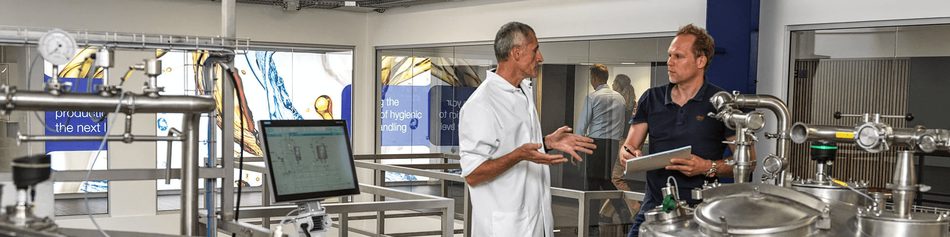 En nuestro vanguardista Centro de aplicaciones e innovación en manipulación de fluidos, le reunimos con expertos del sector para optimizar los procesos de manipulación de fluidos en sus operaciones. Podemos ayudarle a cuantificar y verificar sus procesos con nuestra completa gama de soluciones de bombas, válvulas, limpieza, mezcla y dispersión. Únase a nosotros para experimentar los conceptos del mañana para aumentar de forma rentable el rendimiento, la seguridad higiénica y la sostenibilidad. Un mundo de pura innovación lo espera.